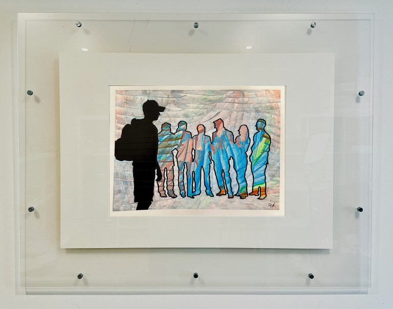 Sie repräsentieren meine Clique, jene Menschen, die damals älter waren, erfahrener, sicherer wirkten. Ganz rechts siehst du die Figur, die ich damals war. Eingereiht, aber nicht wirklich gleichwertig. Ich war dabei und doch etwas abseits, getragen von den dominanten Strömungen anderer, ohne meine eigenen Farben voll zu leben.